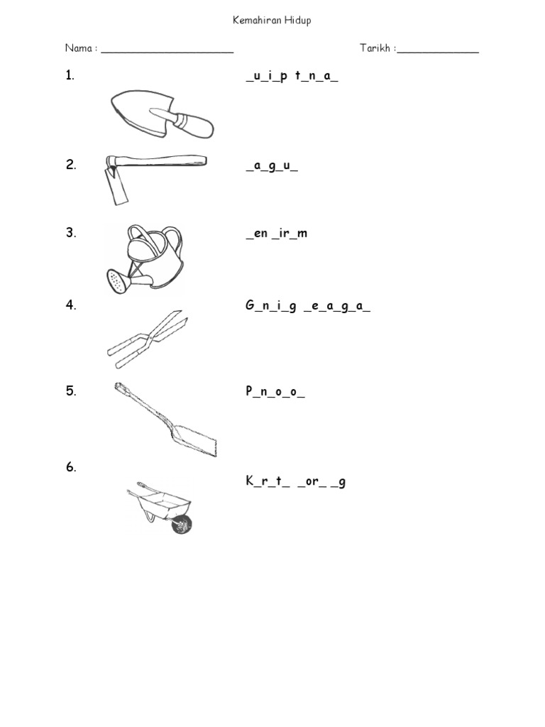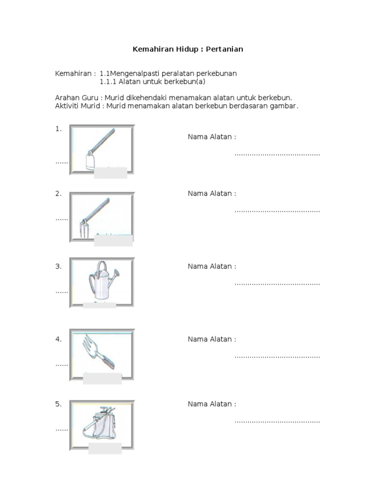 Beberapa alatan asas diperlukan untuk memudahkan kerja-kerja yang perkebunan. Lembaran kerja Keselamatan berkebun Aktiviti Mewarna. Penggunaan alat dan teknologi dalam matematik lembaran kerja.
